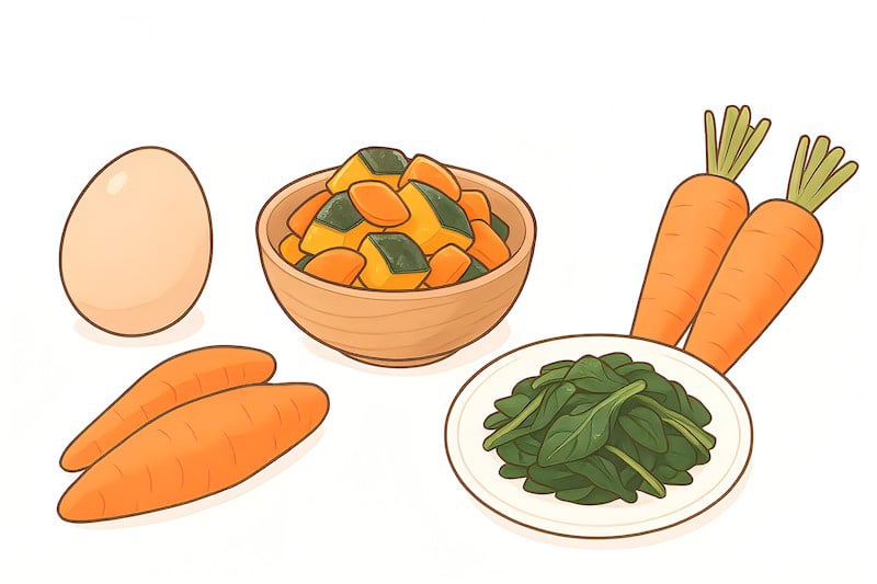βカロテンは油と一緒にとることで吸収されやすくなります。 にんじん+オリーブオイル、かぼちゃサラダ、ほうれん草バターソテーなどの一品を「首のための定番メニュー」にしておくと続けやすくなります。