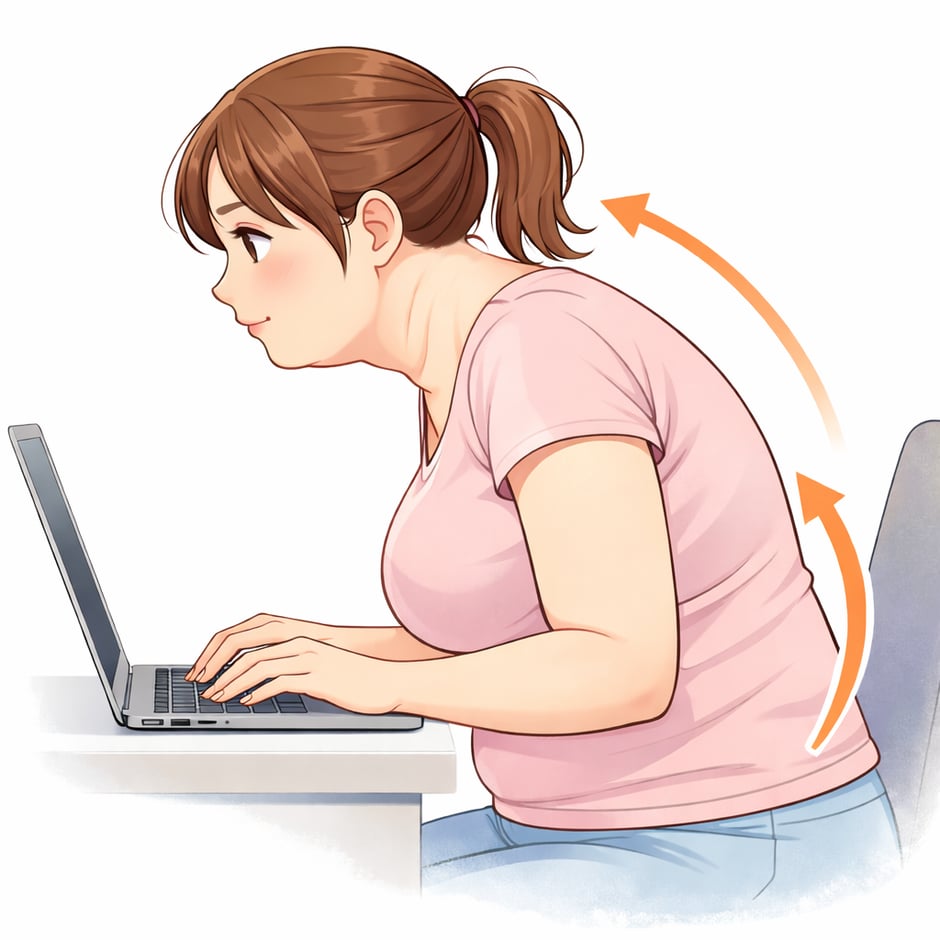 最初は、ただの“折れぐせ”のようなライン。けれど、その姿勢が毎日・何時間も続くと、